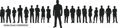 Silhouetted Business Team Standing Together with One Central Leader Highlighted for Leadership, Corporate Unity, and Professional Teamwork Concept