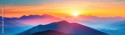 Silhouetted Mountain Ranges at Sunset with a Colorful Sky
