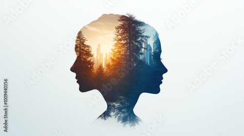 Silhouetted profile with urban and natural scene