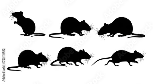 Silhouetted rats in various poses isolated on white background