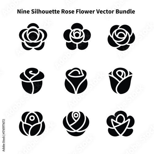Silhouetted Rose Collection: A set of nine elegant rose silhouettes, perfect for adding a touch of floral beauty to any design. Each rose offers a unique perspective on the classic flower.