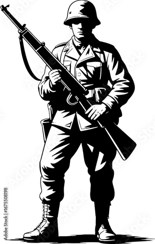 Silhouetted Soldier Holding Rifle Military Vector Design