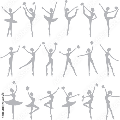 Silhouettes featuring an assortment of flowers, each showcasing a unique dance pose,