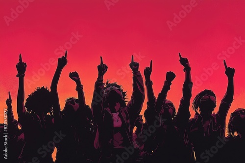 Silhouettes of a Crowd of People Raising Their Hands in the Air