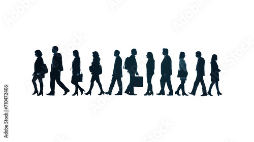 Silhouettes of a number of men and women standing and walking. Black businessman jumps Studio Transparent background.png