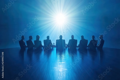 Silhouettes of Business People in Suits Against Bright Light in Conference Room Setting
