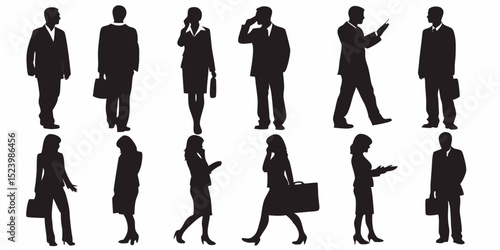 Silhouettes of business people in various poses and actions on a white background vector illustration