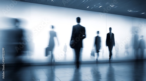 Silhouettes of business professionals in a modern office environment.