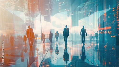 Silhouettes of Businesspeople Walking Through a Modern Cityscape
