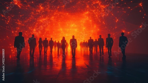 silhouettes of diverse business people connected by glowing lines of light depicting a global business network symbolizing collaboration and strategic partnerships
