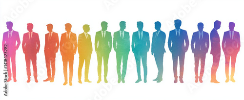 Silhouettes of diverse business people in suits with rainbow gradient color