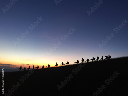 Silhouettes of my friendship who spent time on the mountain in the beautiful sky at the sunset. at Doi Monjong ,Thailand