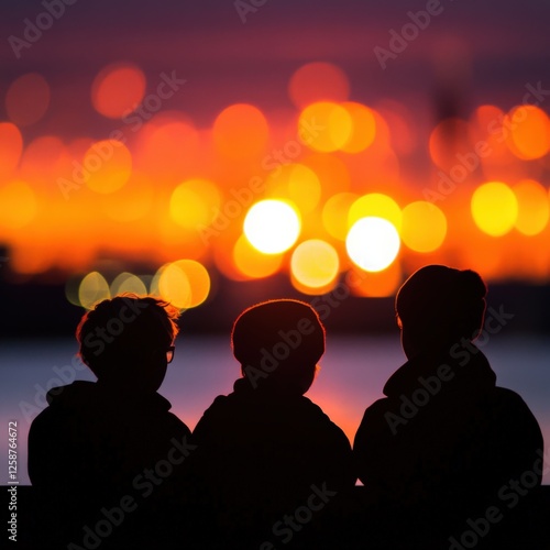 silhouettes of people watching sunset