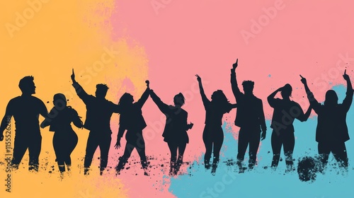 Silhouettes of people with raised hands, a powerful image of unity, celebration, or protest