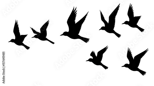 Silhouettes of soaring birds A captivating visual of graceful flight, ideal for design projects, evoking freedom, movement, and a touch of wilderness