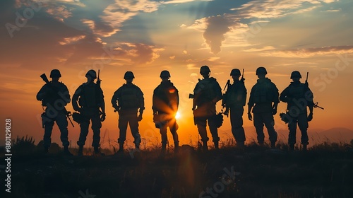 Silhouettes of Soldiers at Sunset