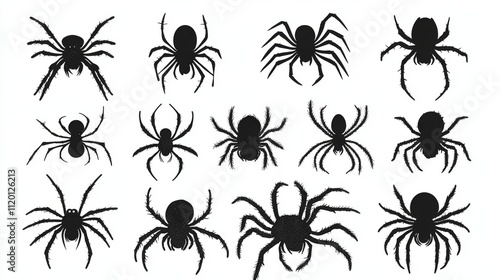Silhouettes of Various Spiders - Detailed Collection of Arachnids