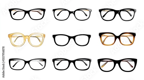 Silhouettes of various stylish eyeglass frames