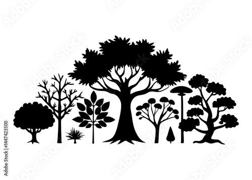 "Silhouettes of Various Trees – Diverse Forest Illustration"