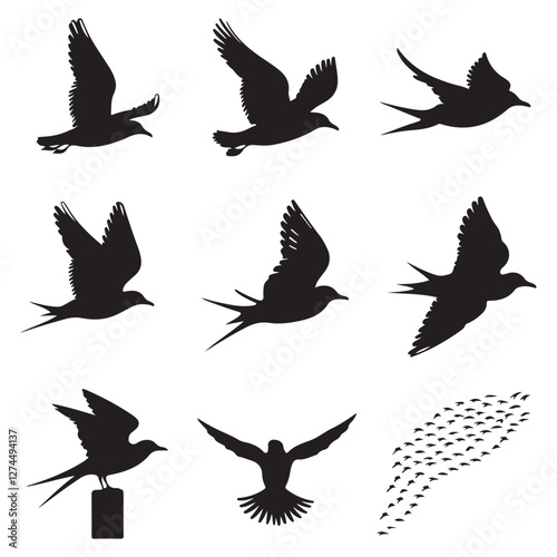 Silhouettes of wild birds in flight Raven Silhouette Pigeons Flying Silhouettes 6 Silhouettes – Birds