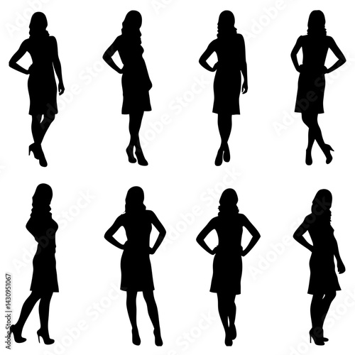 silhouettes of women in diverse standing poses, ideal for fashion designs, branding, digital artwork, and creative projects