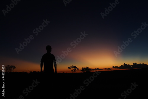 silhueta de homem em por do sol na chapada dos veadeiros, goiás