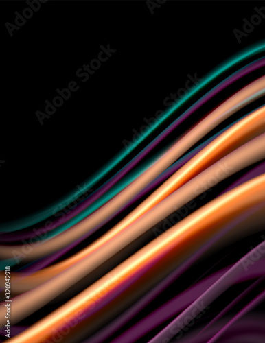 Silk smooth lines on black, liquid fluid color waves. Vector Illustration