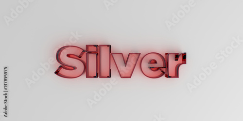 Silver - Red glass text on white background - 3D rendered royalty free stock image.