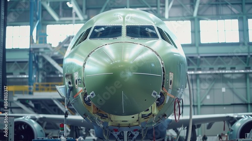 Silver aircraft with swept wings parked at airport gate, awaiting passengers for transcontinental flight