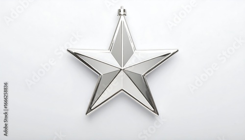 Silver and White Star Christmas Ornament on White Background