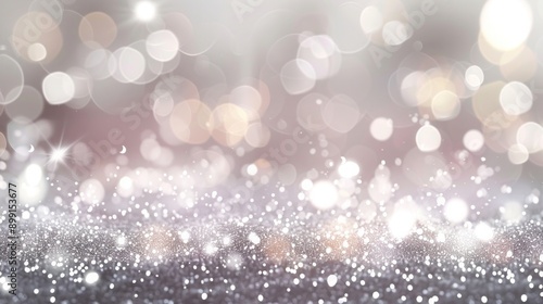 Silver bokeh background with bright sparkles creating a festive and elegant atmosphere