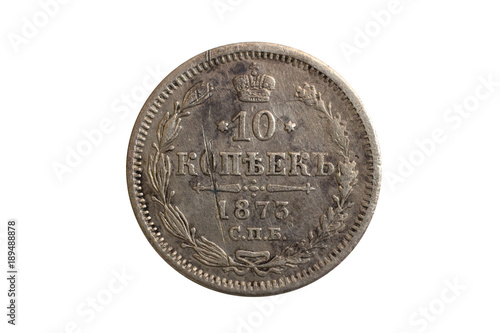 silver coin of the Russian Empire 10 cents on a white isolated background