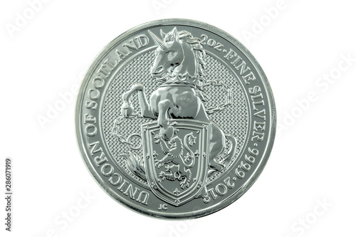 Silver coin with animals isolated on white background