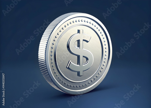Silver Coin with Dollar Symbol on a Dark Blue Background