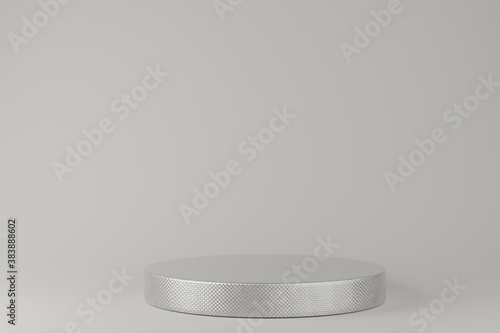 Silver cylinder podium background. Abstract pedestal scene with geometrical. Scene to show cosmetic products presentation. Mock up design empty space. Showcase,shopfront,display case,3d illustration