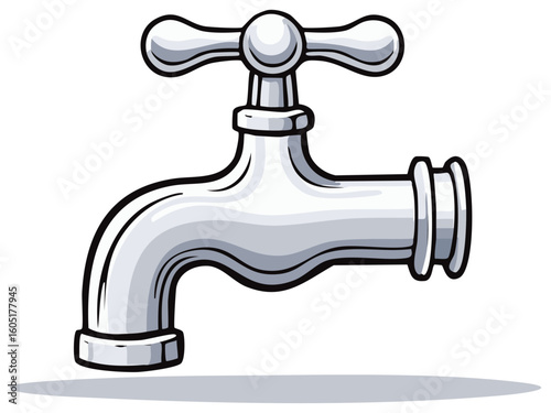 Silver faucet illustration with handle, metal tap equipment drawing, plumbing design