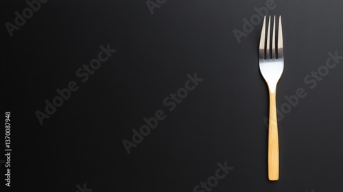 Silver Fork with Wooden Handle on Dark Background Landscape Angle