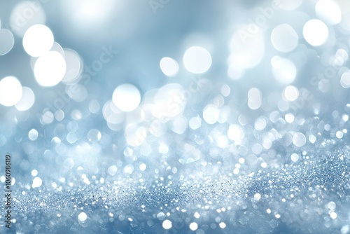 Silver glitter background with bokeh, space for text.