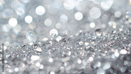 Silver Glitter Bokeh Background with Sparkling Light Particles