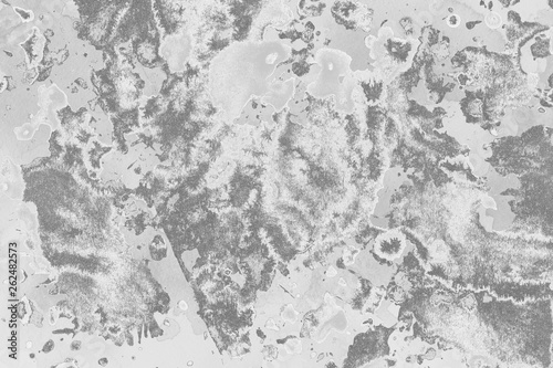 Silver, gray wet abstract paint leaks and splashes texture on white watercolor paper background. Natural organic shapes and design.