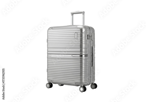 Silver Hard Shell Suitcase with Wheels on Transparent Background