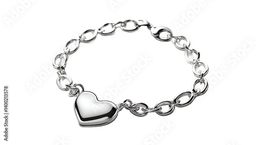 Silver Heart Bracelet with Link Chain on Transparent Background