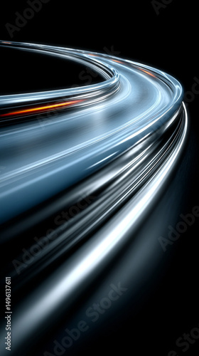 Silver light waves spiral into an electric tunnel, glowing on a black or white background. The scene evokes speed, power, futuristic motion, and the flow of digital energy through space.