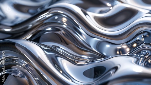 Silver Metallic Waves Shiny Chrome Metal Wavy Liquid Pattern