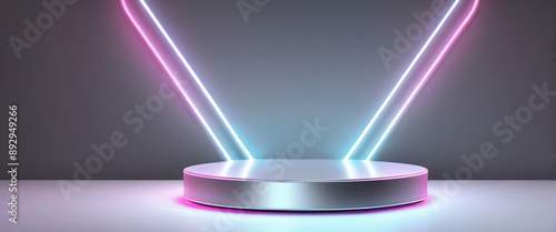 Silver neon modern stand podium for display product. Background for cosmetic product branding, identity and packaging inspiration