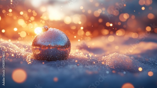 Silver Ornament Rests in Sparkling Winter Snow