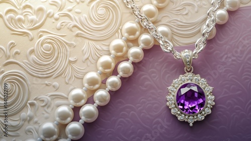 Silver Pearl Necklace Detail - Cinematic Lighting Photo