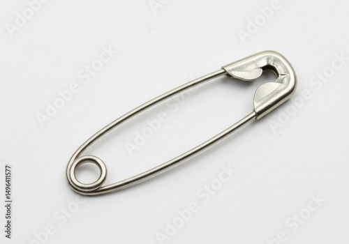 Silver safety pin isolated on white background