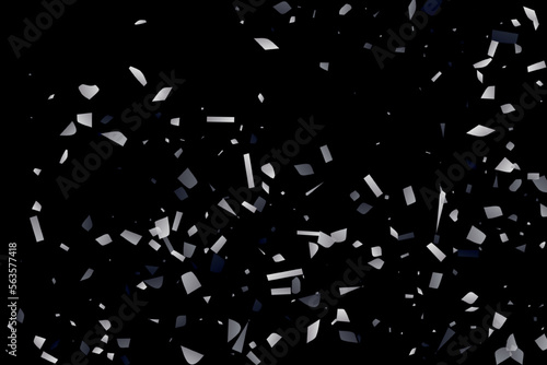 Silver shine of confetti on a black background. Illustration of a drop of shiny particles.