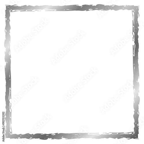 Silver square frame isolated on white. Old worn frame . Vector frame for text, photo, card, certificate, picture, banner, poster. Metal texture